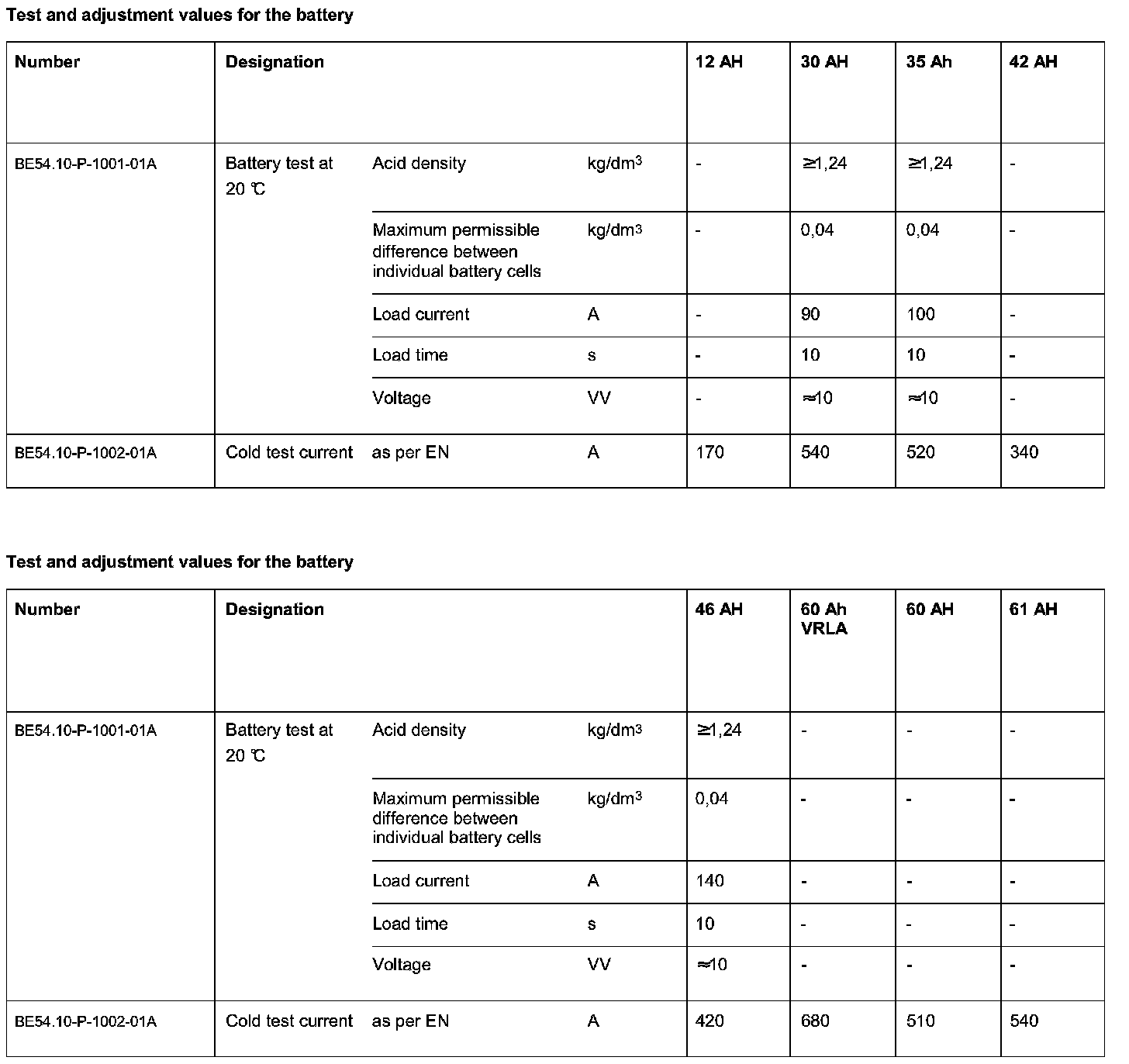 BE54.10-P-1000-01A Test Values For Battery, Voltage Supply