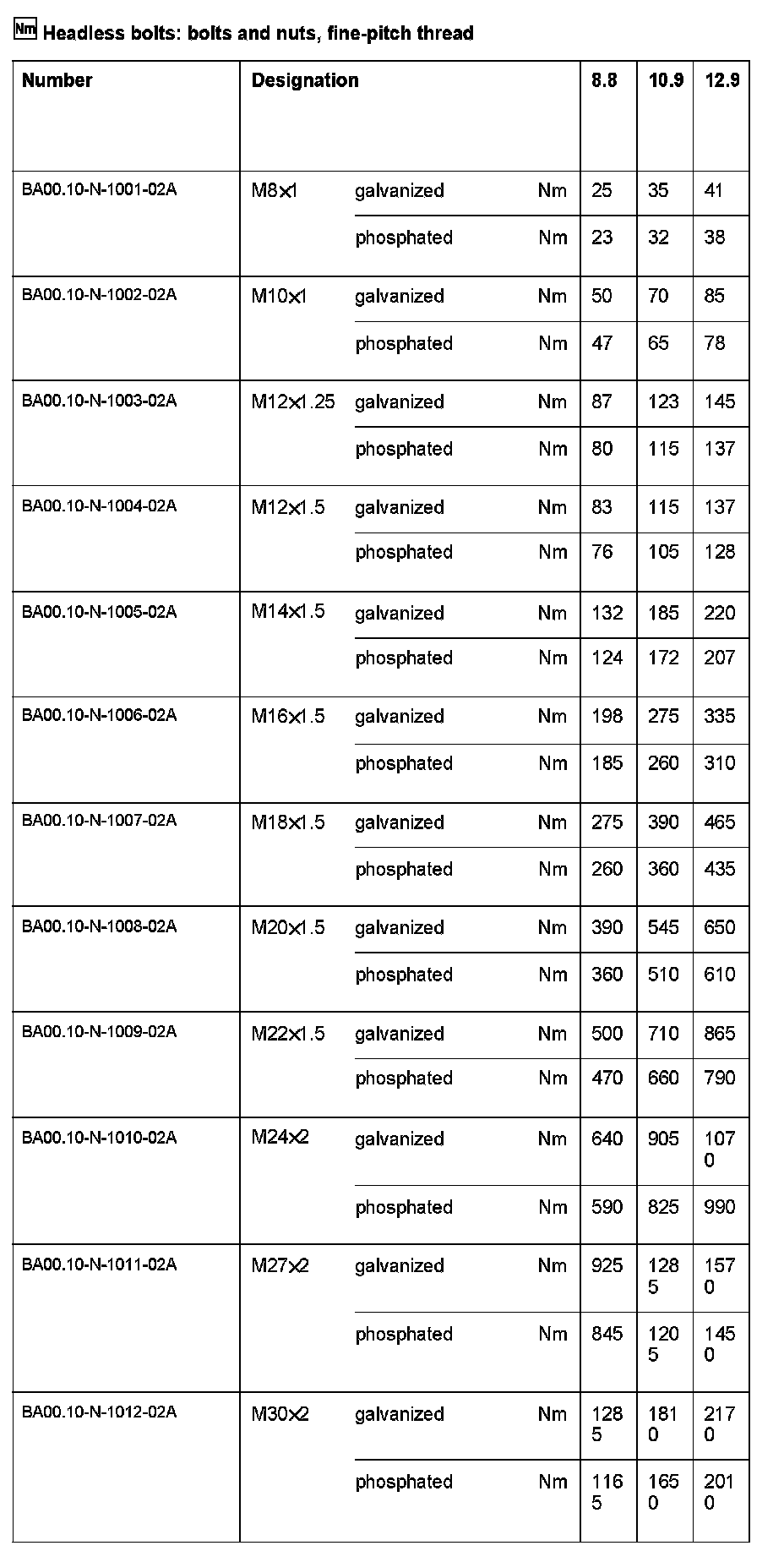 BA00.10-N-1000-02A DIN Tables For Tightening Torques For Fine-Pitch Threads