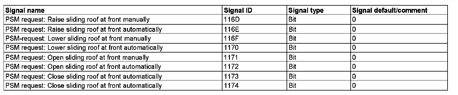 GF54.21-D-3027H Signal List For Sliding Roof, PSM, Function
