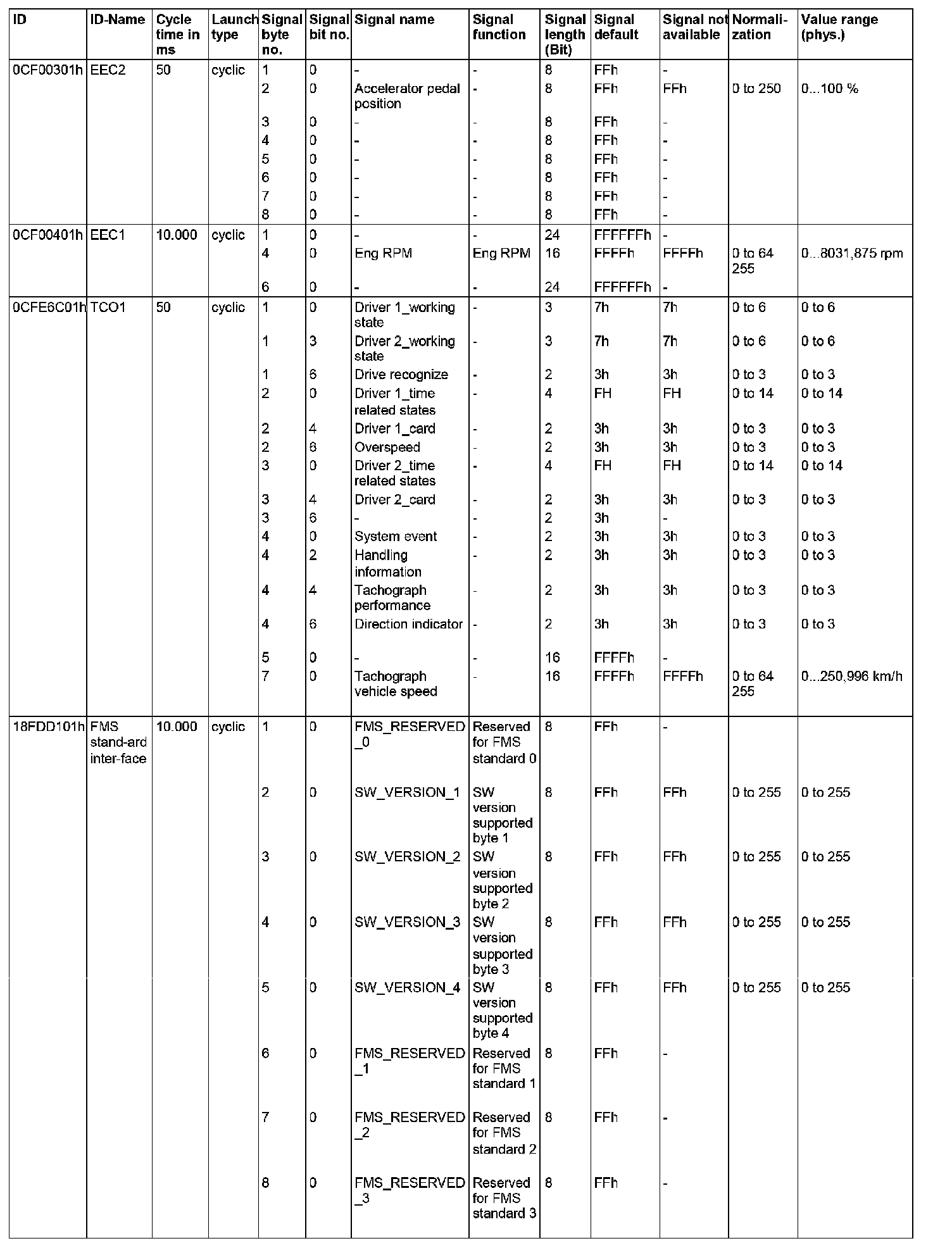 - with CODE (ED8) Preinstallation for parameterizable special module (PSM) Outgoing CAN signals, FMS-Standard