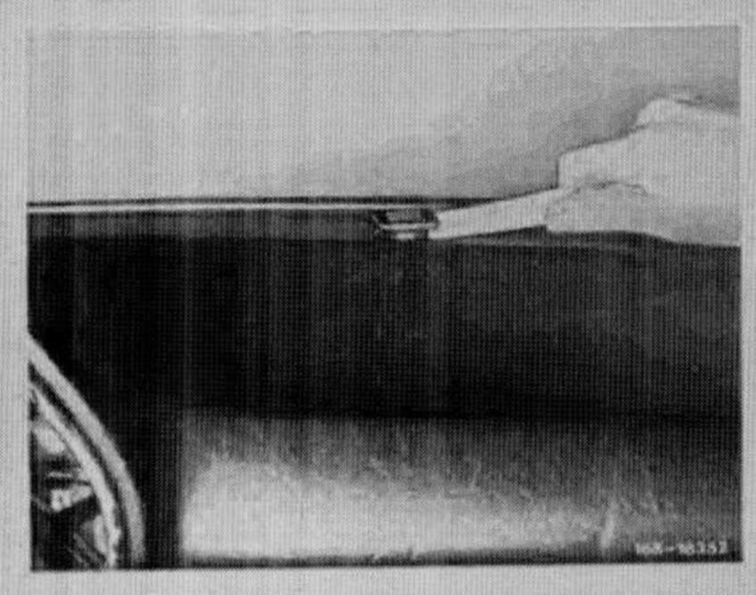 36. Align panel vertically in such a manner that the wooden veneer strip of panel is in alignment with wooden vaneer strip of drivers door.