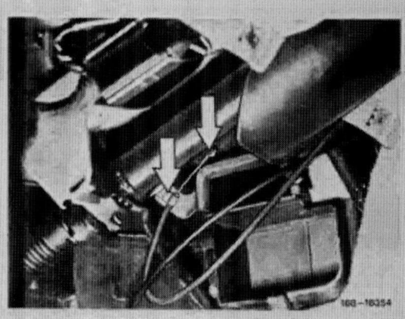 21. Push out clips on heater box connection to center jet on panel and pull off rubber sleeve.