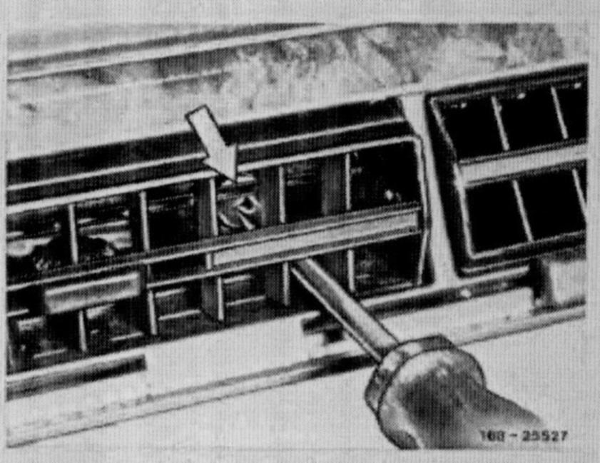 22. Unscrew adjusting screw for non-heatable fresh air, center.