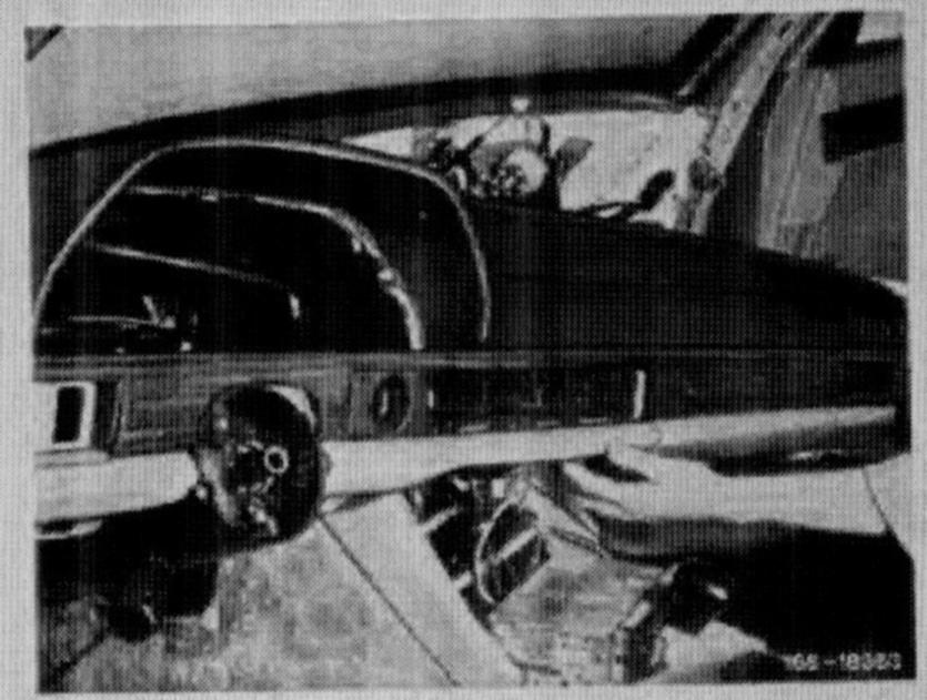 34. Push panel forward and introduce defroster nozzles on heater box.