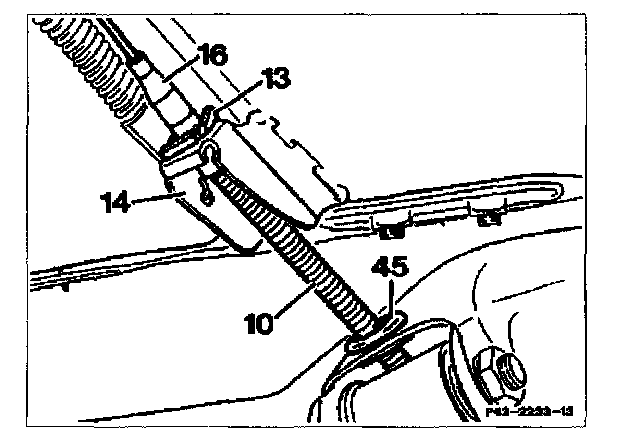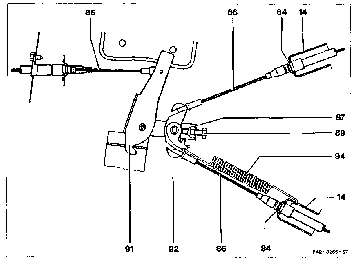 - Remove spring clip (84). Pull control cable out of mount (14) toward rear and through rubber sleeve in semitrailing arm.
