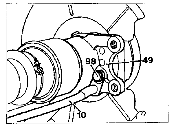 1 Screw bolt (98) out of wheel carrier (49) and remove brake control cable (10).