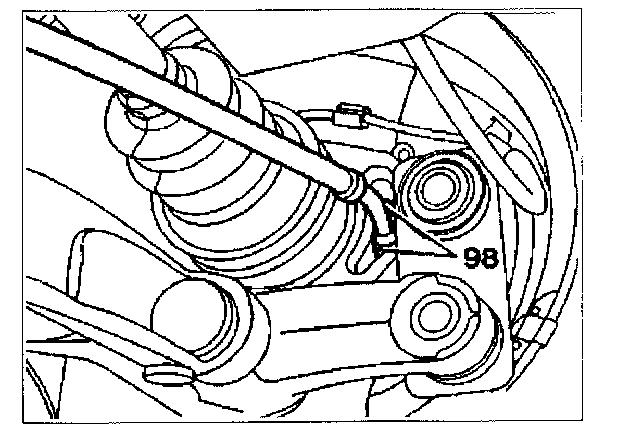 Note: On vehicles with anti-squat control screw both bolts (98) out of wheel carrier and remove brake control cable (10).