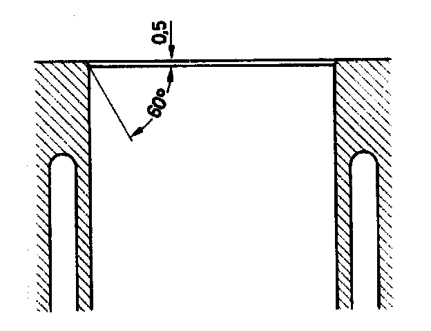 After performing facing, chamfer cylinder bores. Equalize bottom edge of chamfer with polishing wheel.
