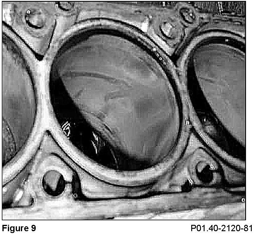 Individual blank points, e.g. in the middle of cylinder or in the area of cylinder head bolts.