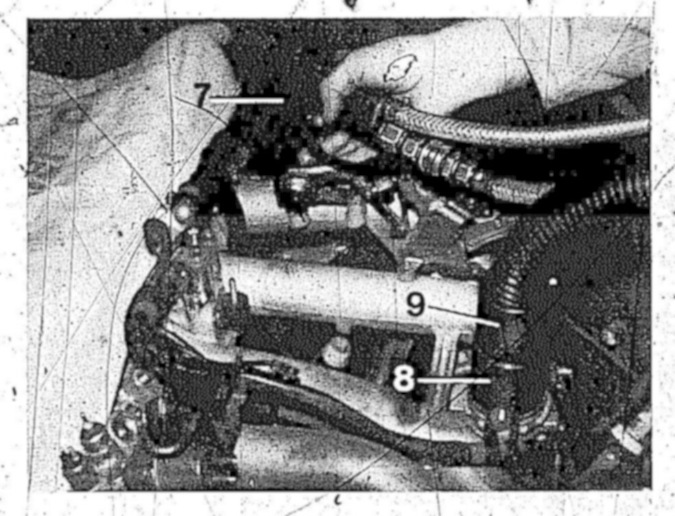 9 Force inlet valve down by means of the valve spring compressor 123 589 03 61 00 while turning the valve by 180°.