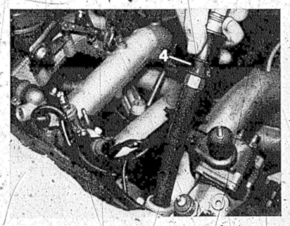 8 Blow out intake port with the blow-out valve (4) via the injection valve bore with the extraction switched on.