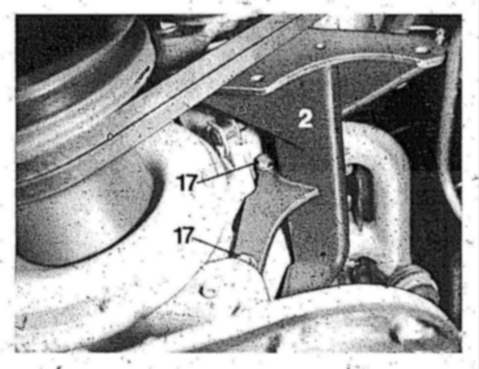 b) Tighten bolts (17) at engine front.
