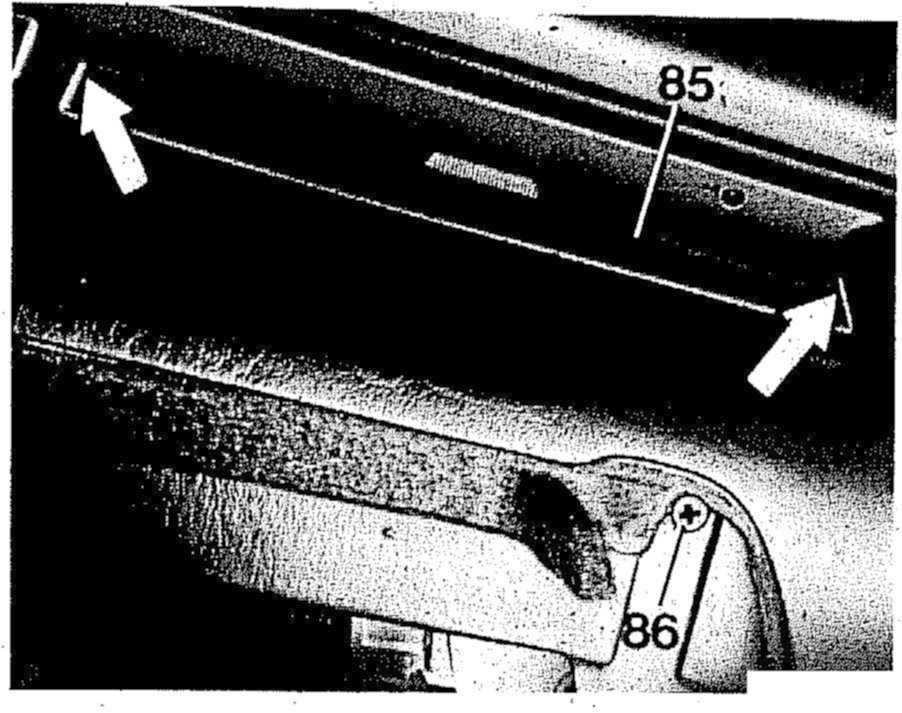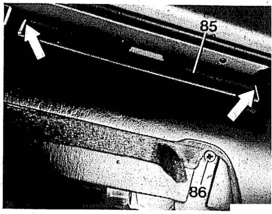 On version starting 07/82.loosen connecting rod (87) by unscrewing Phillips head screw (arrow) with swivelling venetian blind (85) installed.