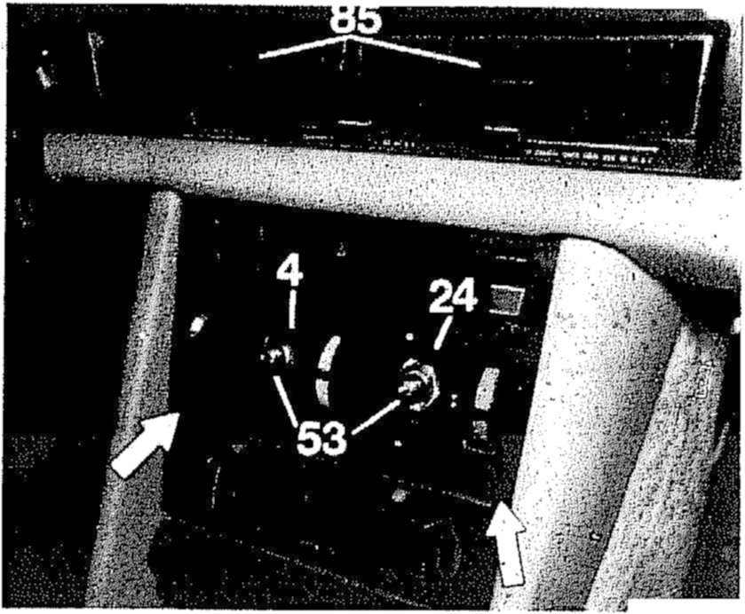 10 On version up to 06/82.reach through opening for glove box and instrument cluster while disconnecting connecting rod (87) and then lift out frame (88) with connecting hose toward the rear.