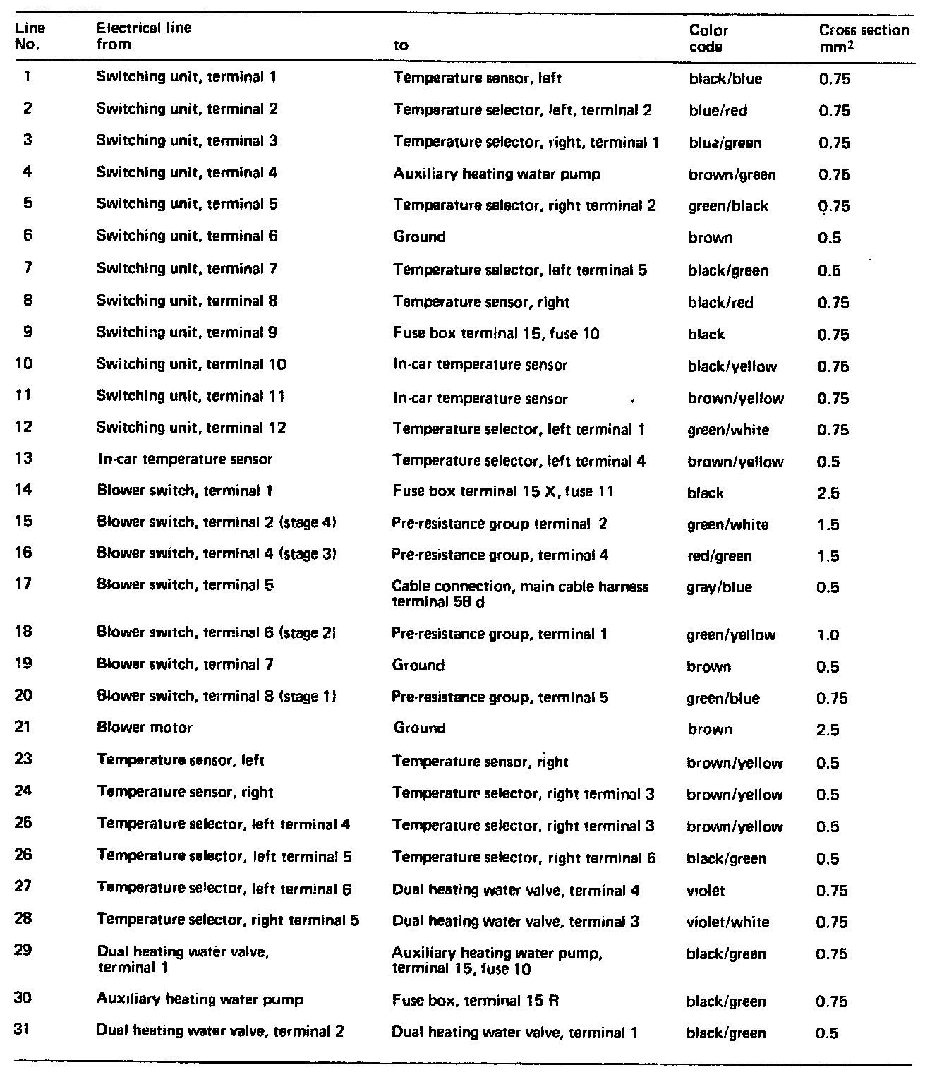 Auxiliary cable harness for automatic heating system engine 116/117 starting 01/80