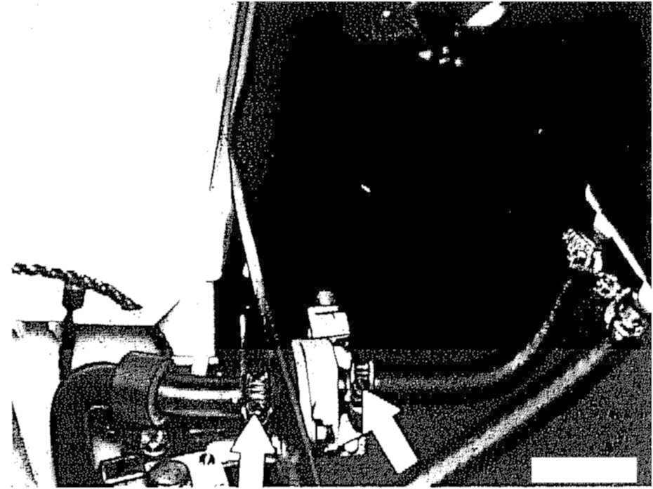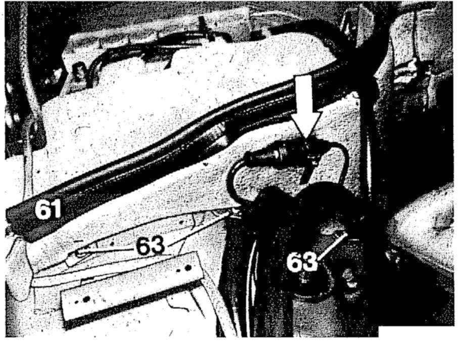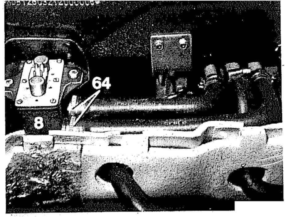 5 Loosen protective strip (61) on bracing wall right as far as necessary and lift positive cable of battery upward out of bracing wall.