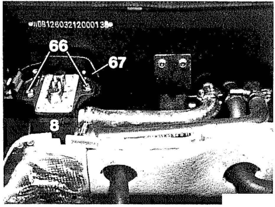 9 Remove bolts (66) and lift dual heating water valve (8) off bracket (67).