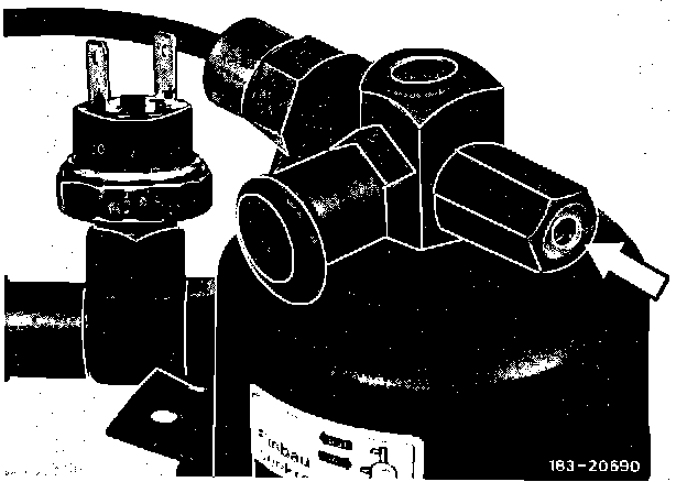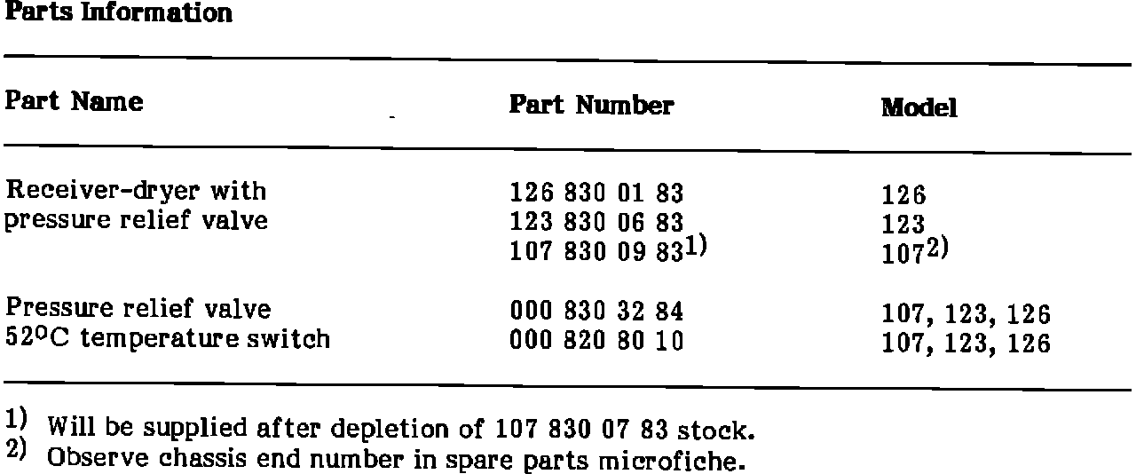 Since October 1981, receiver-dryers with pressure relief valve (arrow) were installed. This valve will discharge refrigerant at approximately 40 +/- 5 bar / 580 +/- 73 psi and win close again at approximately 5 bar / 73 psi below opening pressure. This will prevent the discharging of the entire refrigerant charge. The pressure relief valve can be replaced by itself (Figure 5).