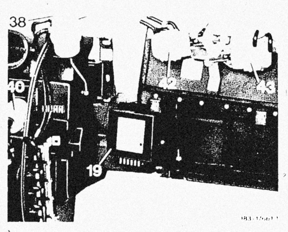 For activating the control unit for idle speed regulation, the lug "a" (refer to Figure) is located on floor of fusebox adjacent to cable connector terminal 30. In addition, the cut-in point for the temperature switch and for the auxiliary fan has been changed from 110 °C to 100 °C and from 62 °C to 52 °c.