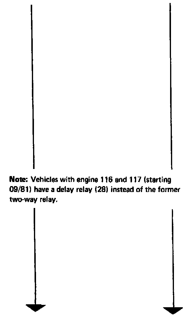 On vehicles starting 09/81, closing of ETR-switch will additionally switch on the magnetic clutch for the refrigerant compressor via delay valve under a delay of approx. 0.7 s. Simultaneously. voltage is applied at control unit for electronic idle speed regulation via lug "a". As a result, the idle speed of the engine will be increased before the refrigerant compressor will be additionally switched on.