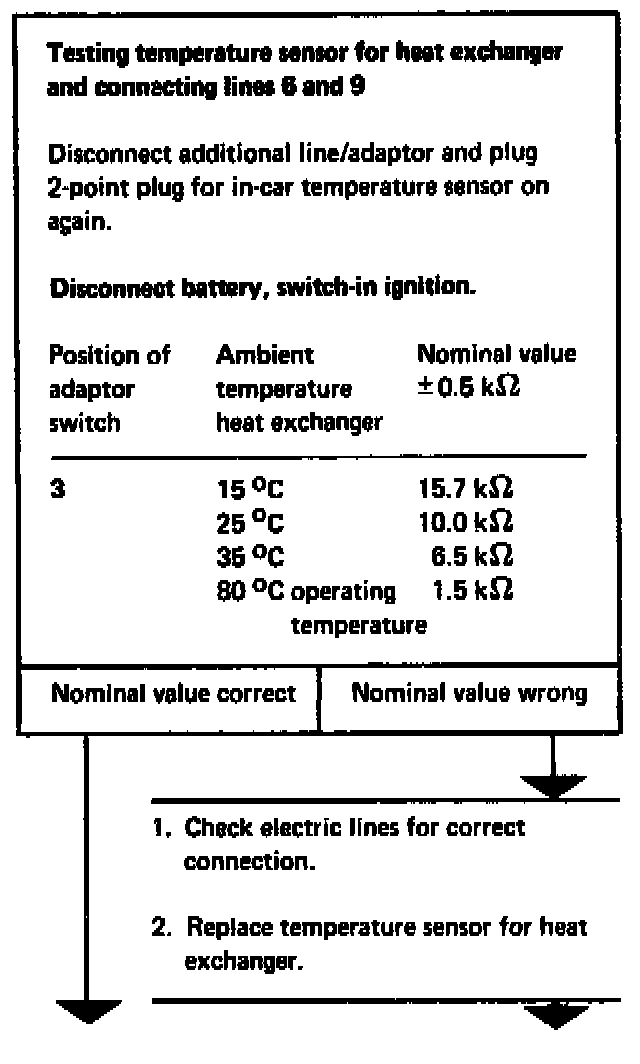 Testing temperature sensor for heat exchanger and connecting lines 6 and 9