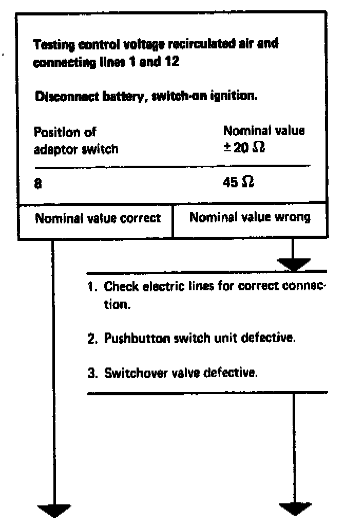 Testing control voltage recirculated air and connecting lines 1 and 12