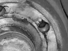 3 Check channel or spherical caps of wheel bolts, wheel nuts and disk wheels for signs of damage, seizing marks and material deposition.