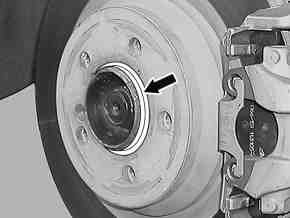 5 Apply a thin coating of long-life grease as corrosion protection to the marked area of the center hole guide (arrow) on the wheel hub or wheel flange and wheel contact surface.