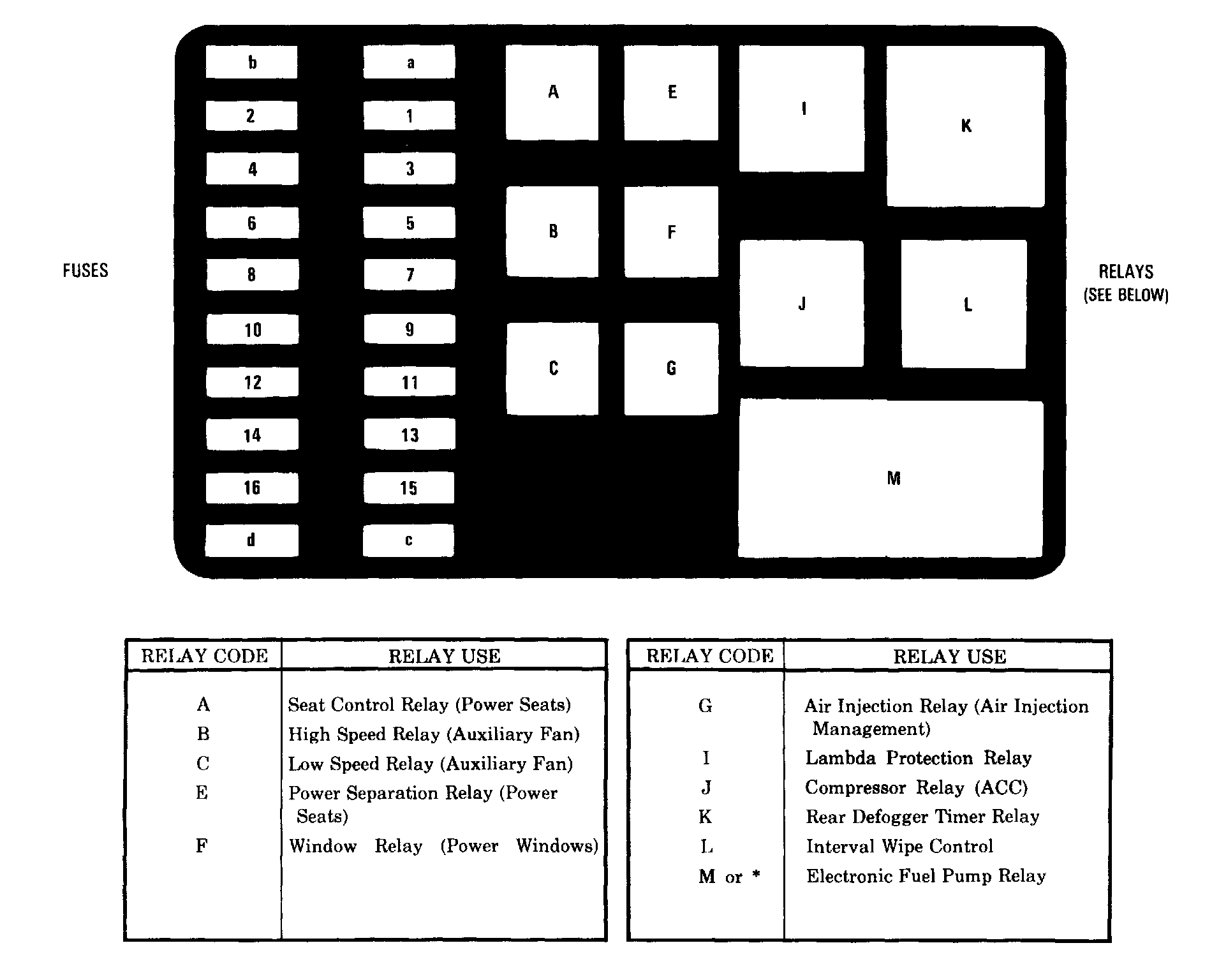 Fuse & Relay Box Layout / Relay Identification: