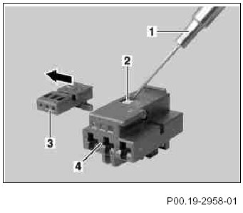 6 Remove connector housing (3) from cap (2) in direction of arrow.
