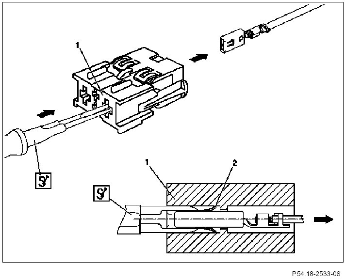 6 A slight tug on the corresponding cable will remove the female contact (1) from the coupling.