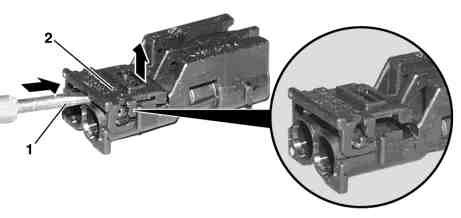 3 Using a suitable tool, slide secondary retainer (1) to the pre-locking position.