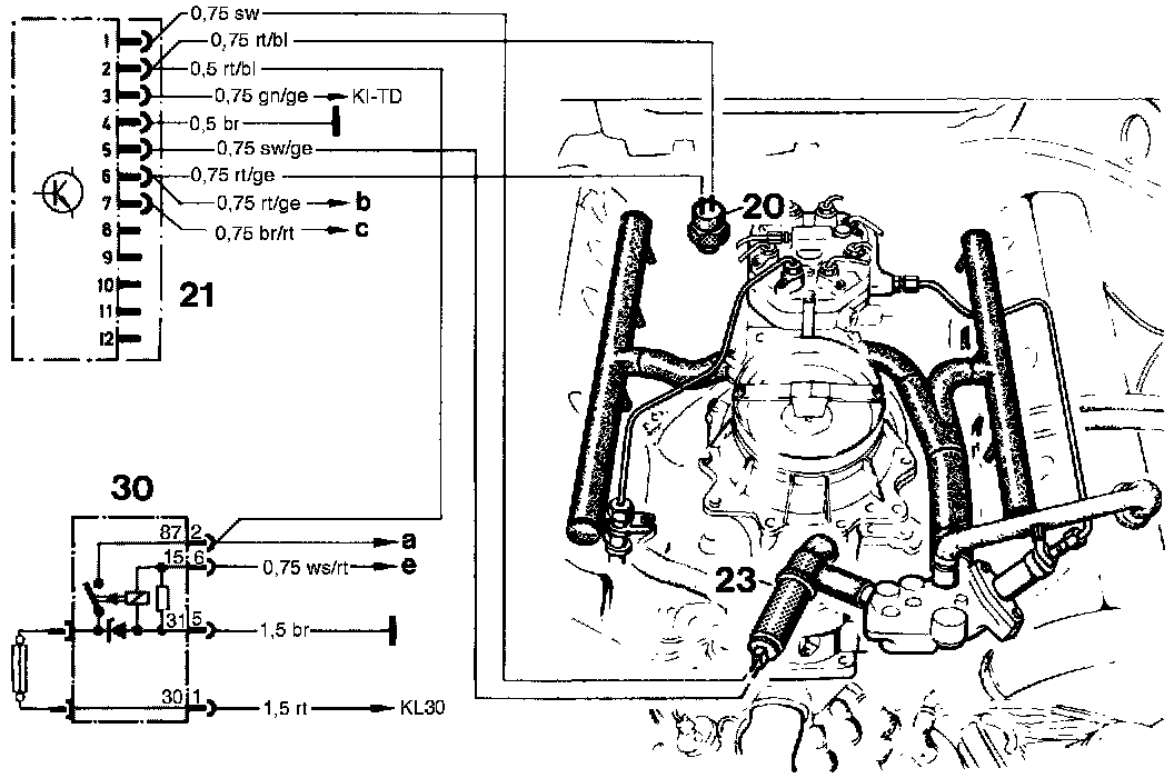 c) to throttle valve switch via terminal 6 of electronic lambda control unit