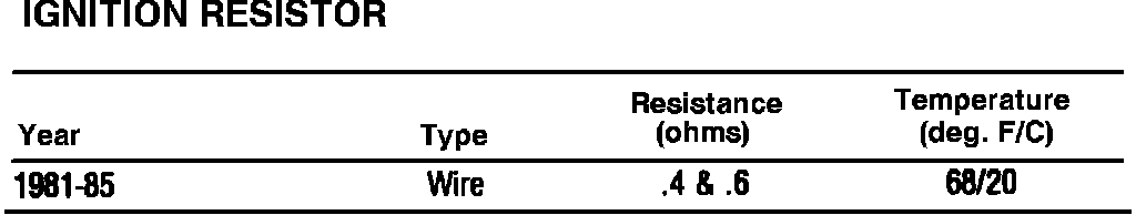 Ignition Resistor Specifications: