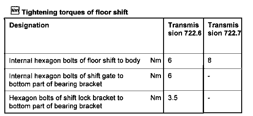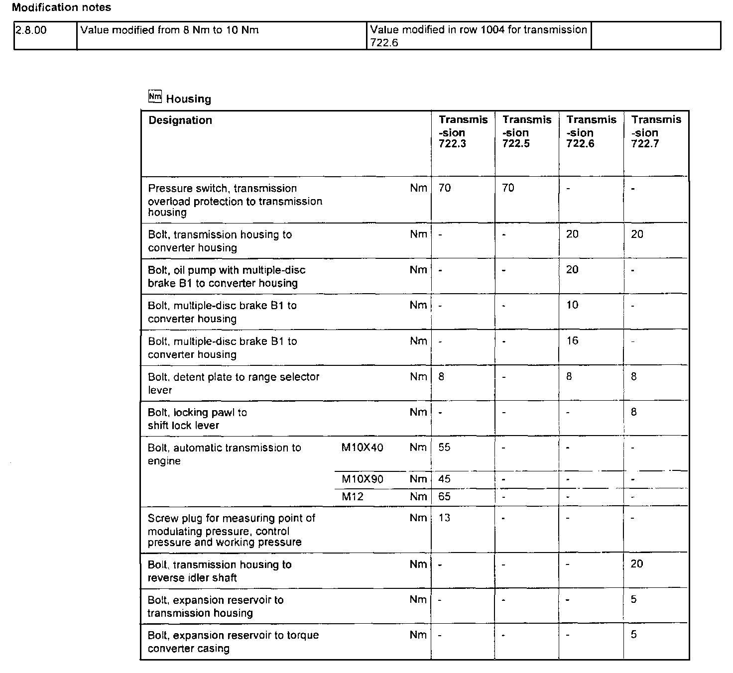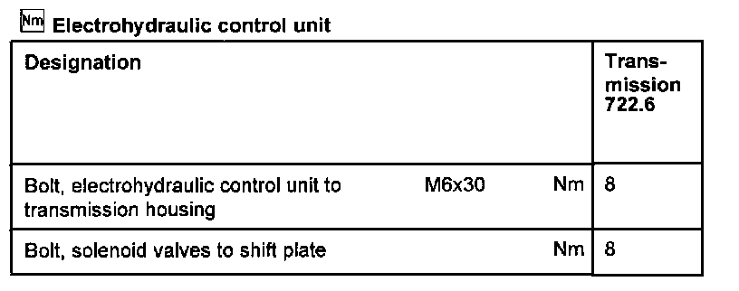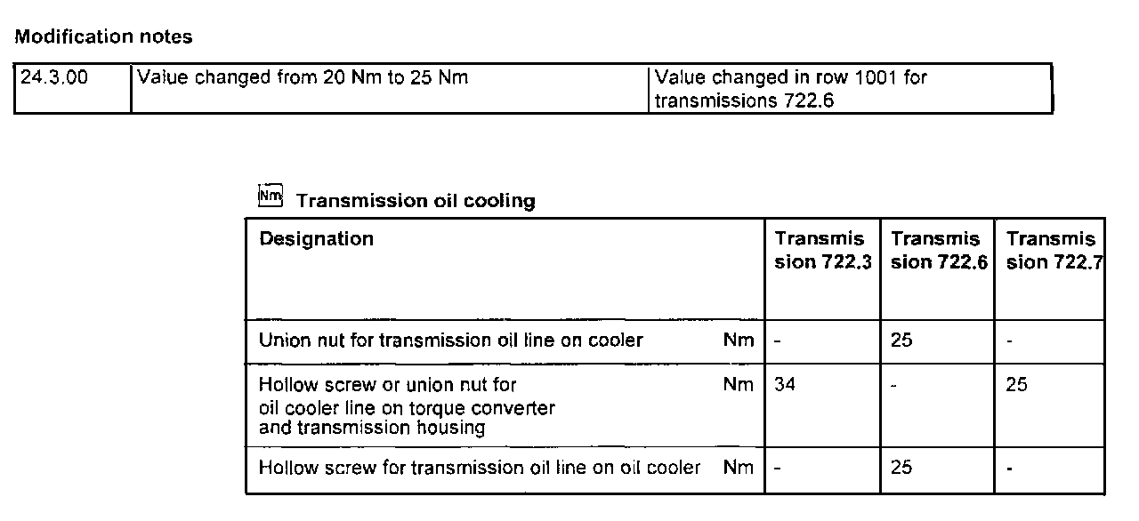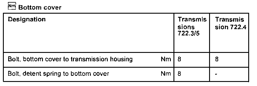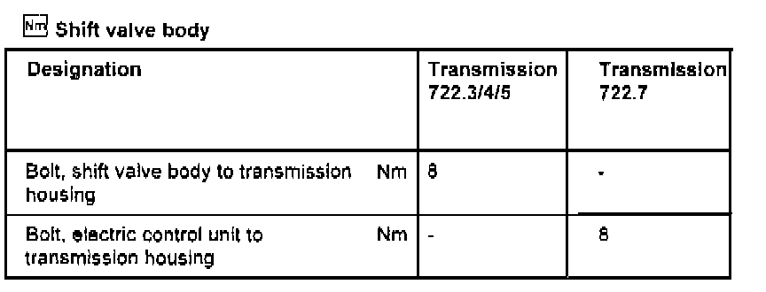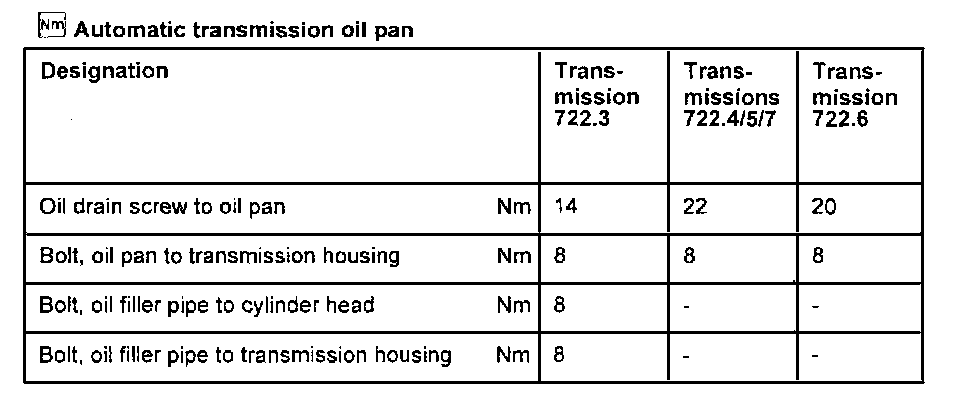 Transmission Type 722.3Torque Specifications Are For Clean & Lightly Lubricated Threads Only.