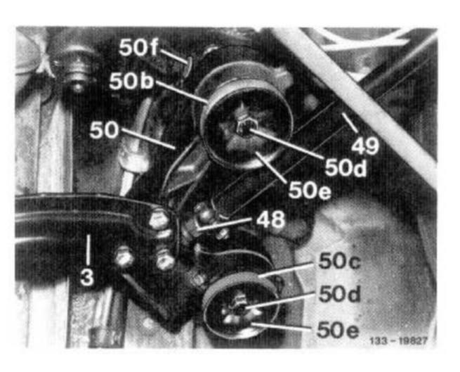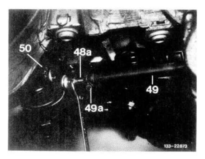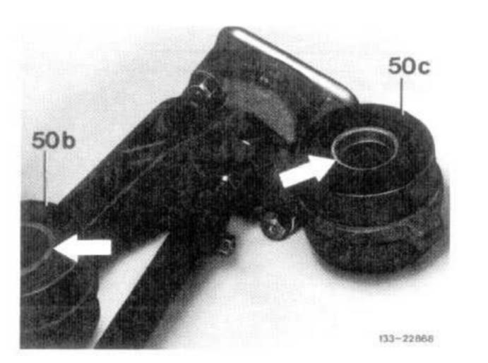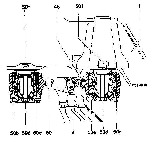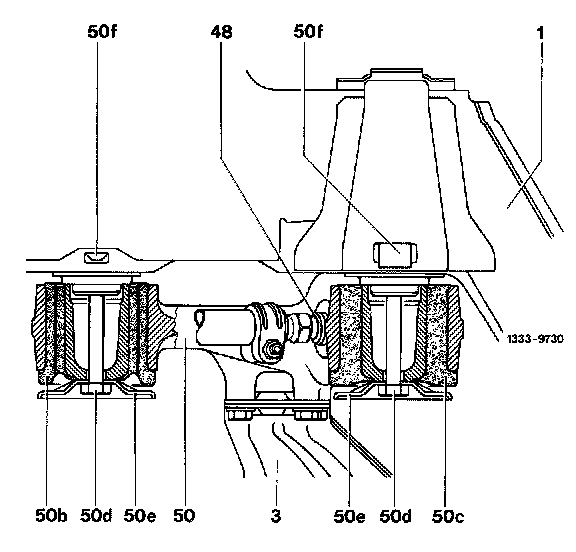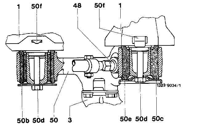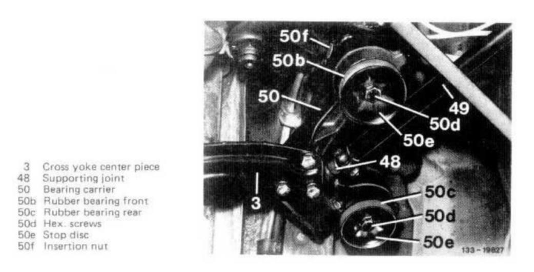 The front rubber bearings (50d) in bearing carrier (50) have been replaced starting September 1981 by installation of 2nd version.