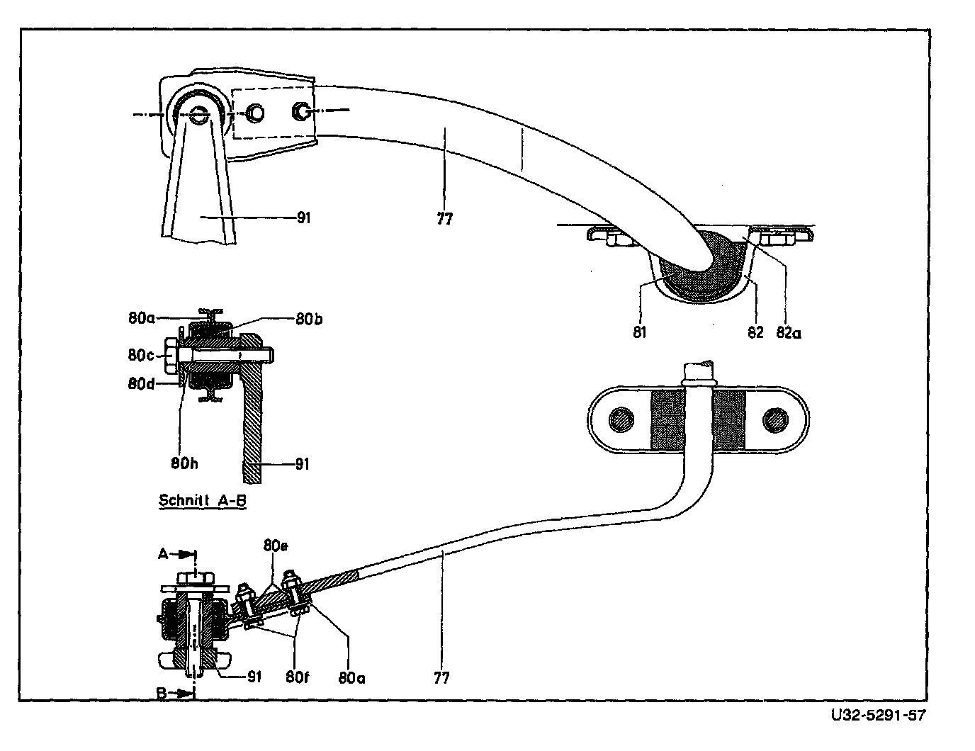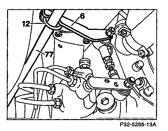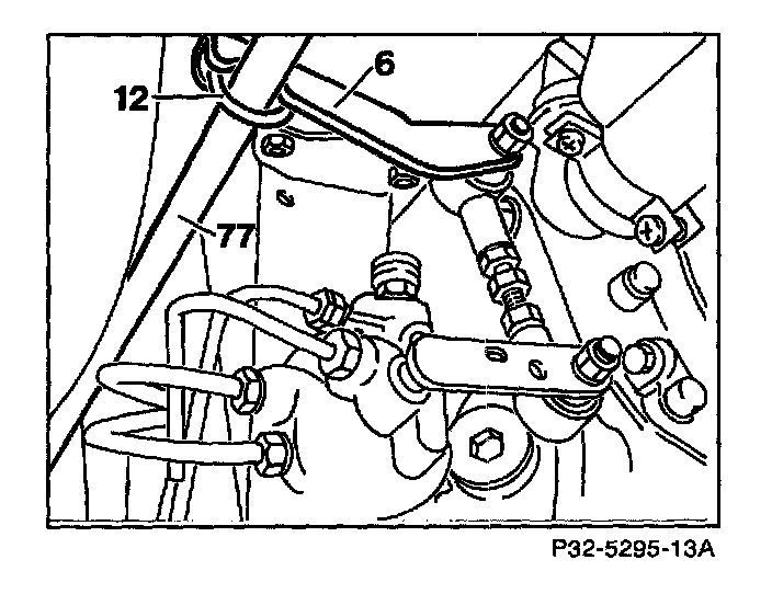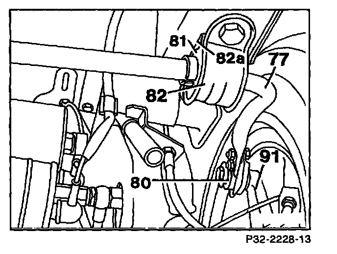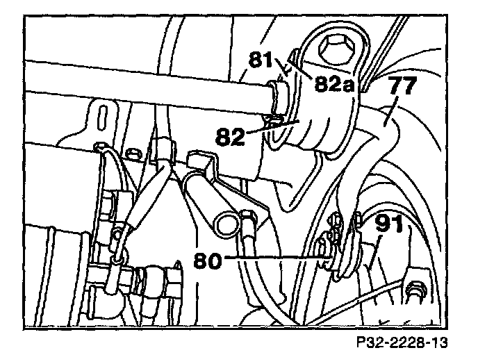 1. On vehicles with automatic level control remove bracket (12) and separate lever (6) from stabilizer bar (77).