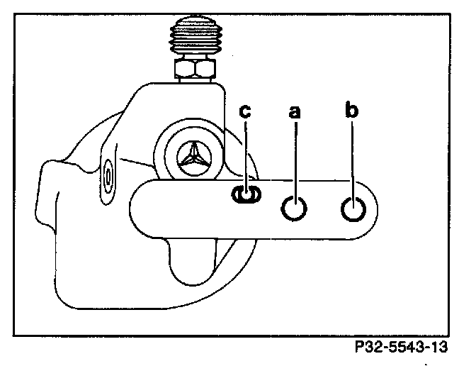 The stabilizer bar link is inserted into hole "a" on vehicles without anti-squat geometry, into hole "b" on vehicles with anti-squat geometry.