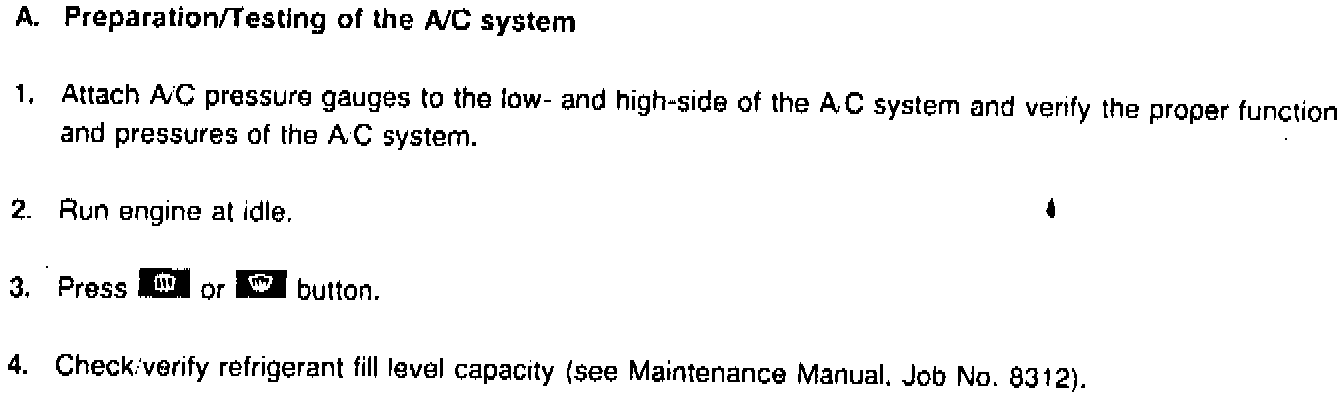 3. Check for proper operation of A/C system.