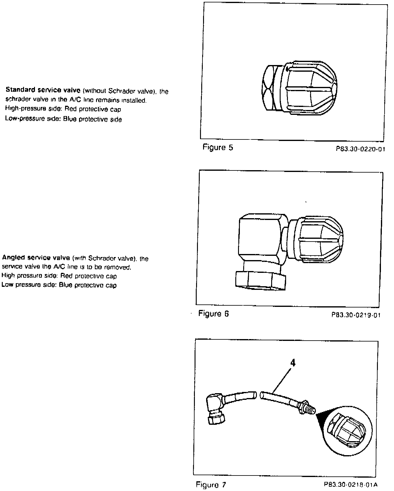 The adapter hose (4, Figure 7) is designed for use in areas with difficult access to the service valve. Additionally, depending on the application (high- or low-pressure side), the standard service valve with respective protective cap (Figure 5) must be installed on the open end of the adapter hose (circle, Figure 7).