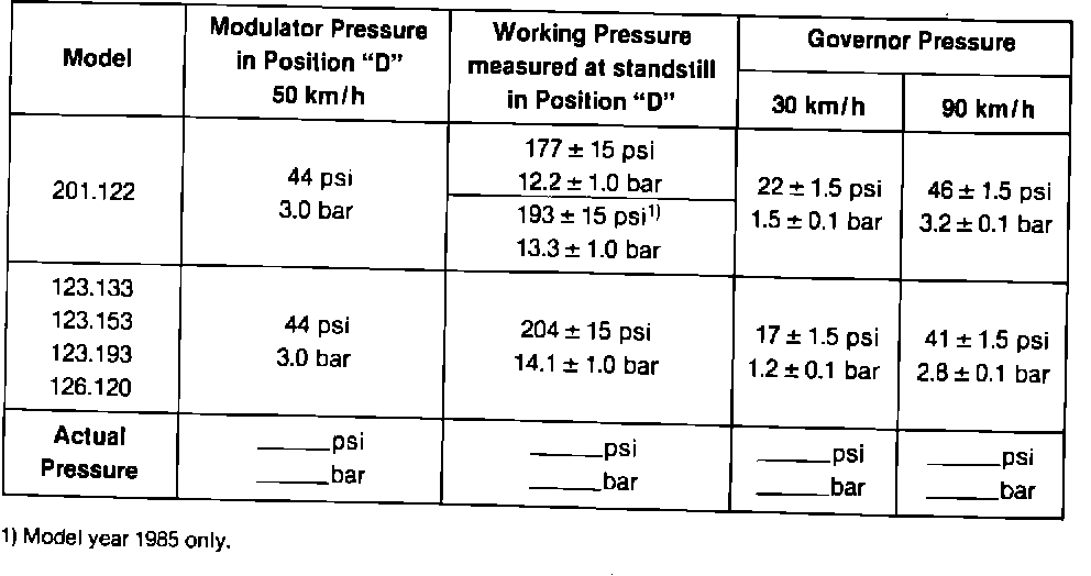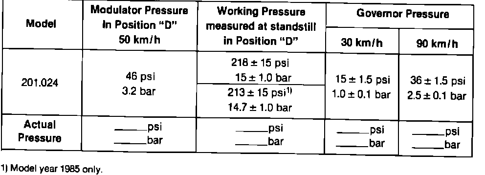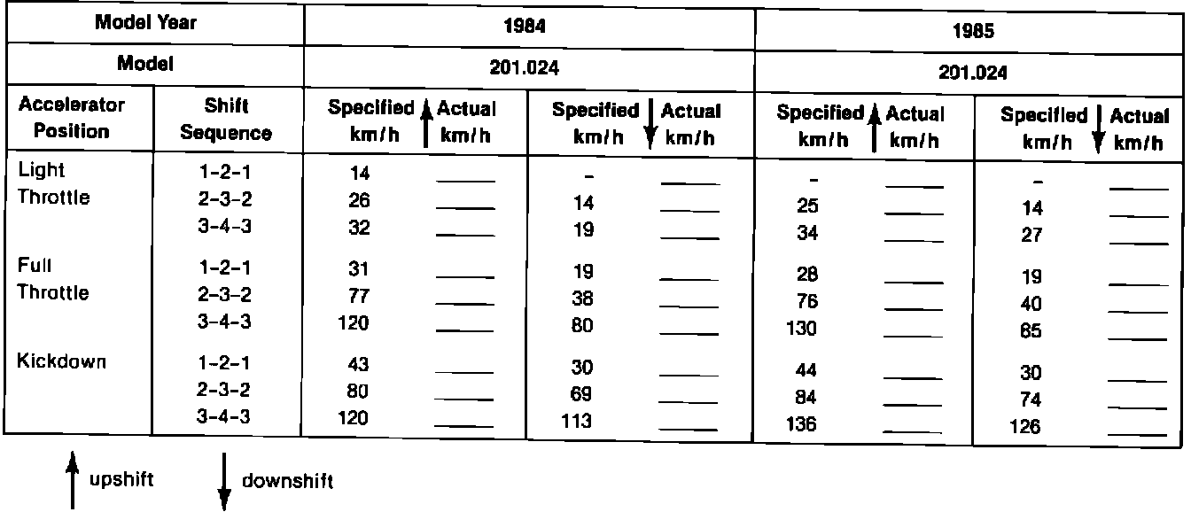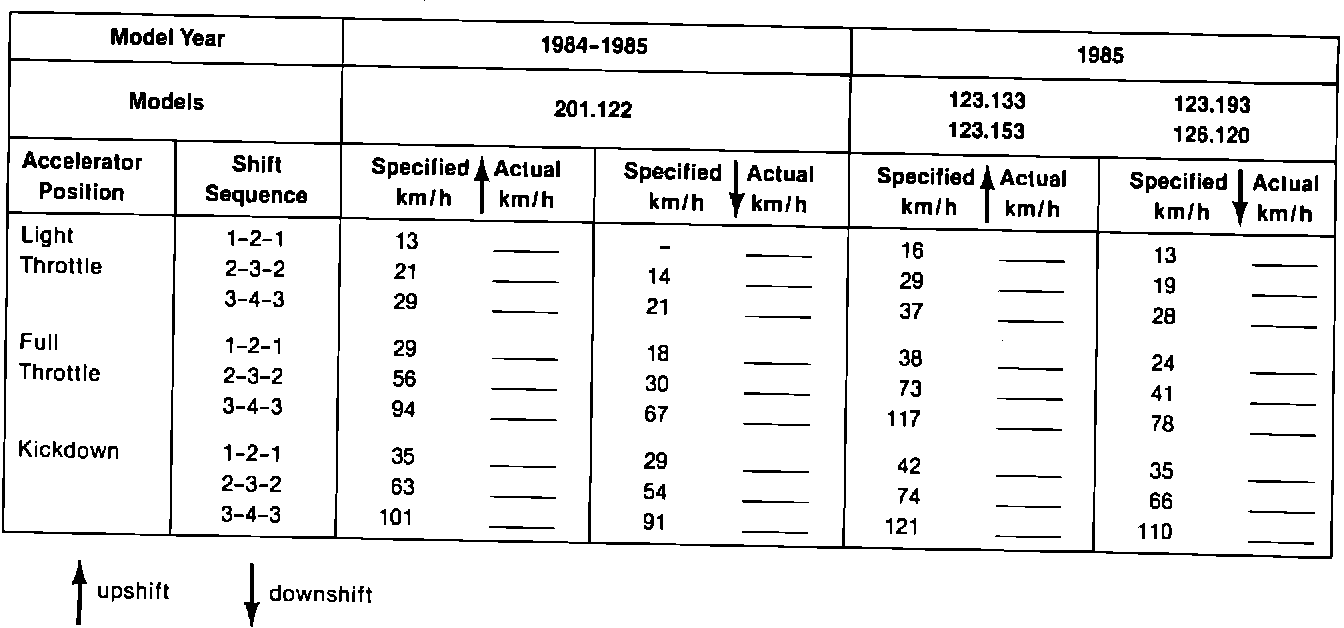 TEST SHEET FOR AUTOMATIC TRANSMISSIONS GASOLINE AND DIESEL MODELS MODEL YEARS 1984-1985TYPE: W4A020 (722.4)