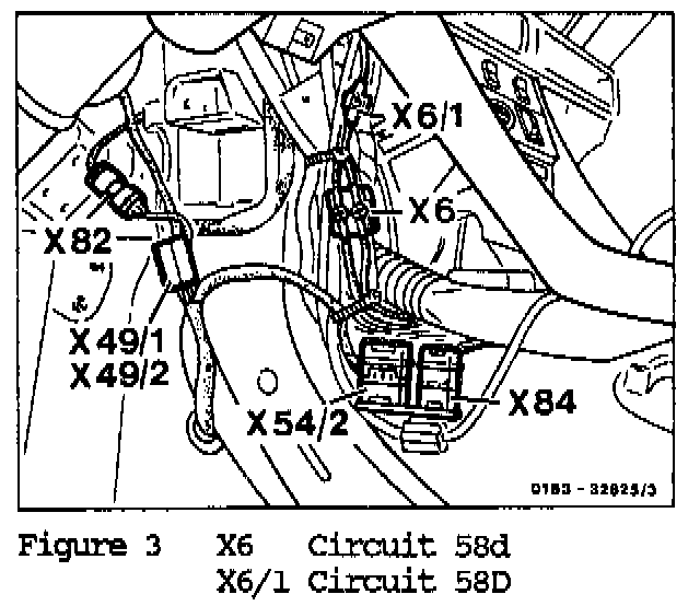 7. Route new wire tram connector A2x1 to terminal block X6, circuit 58d (Figure 3) and connect.
