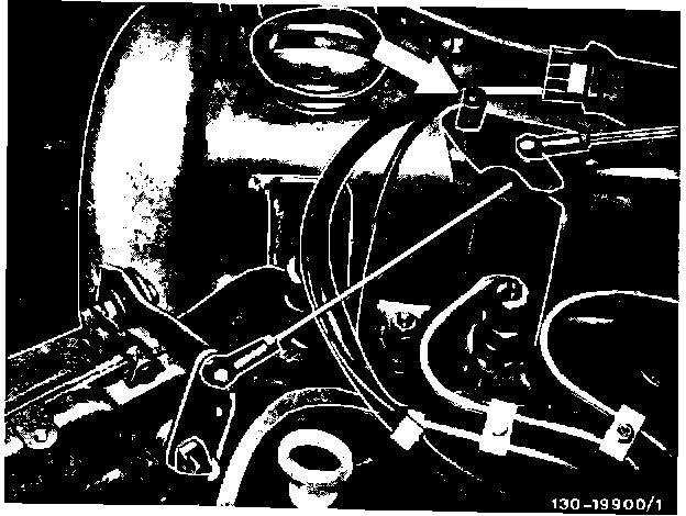 The deceleration fuel shutoff feature of the CIS-E system is not cancelled when driving with the cruise control in operation. Checking is possible by disconnecting the plug of the micro switch (arrow) at the throttle lever. Surging should then be eliminated.