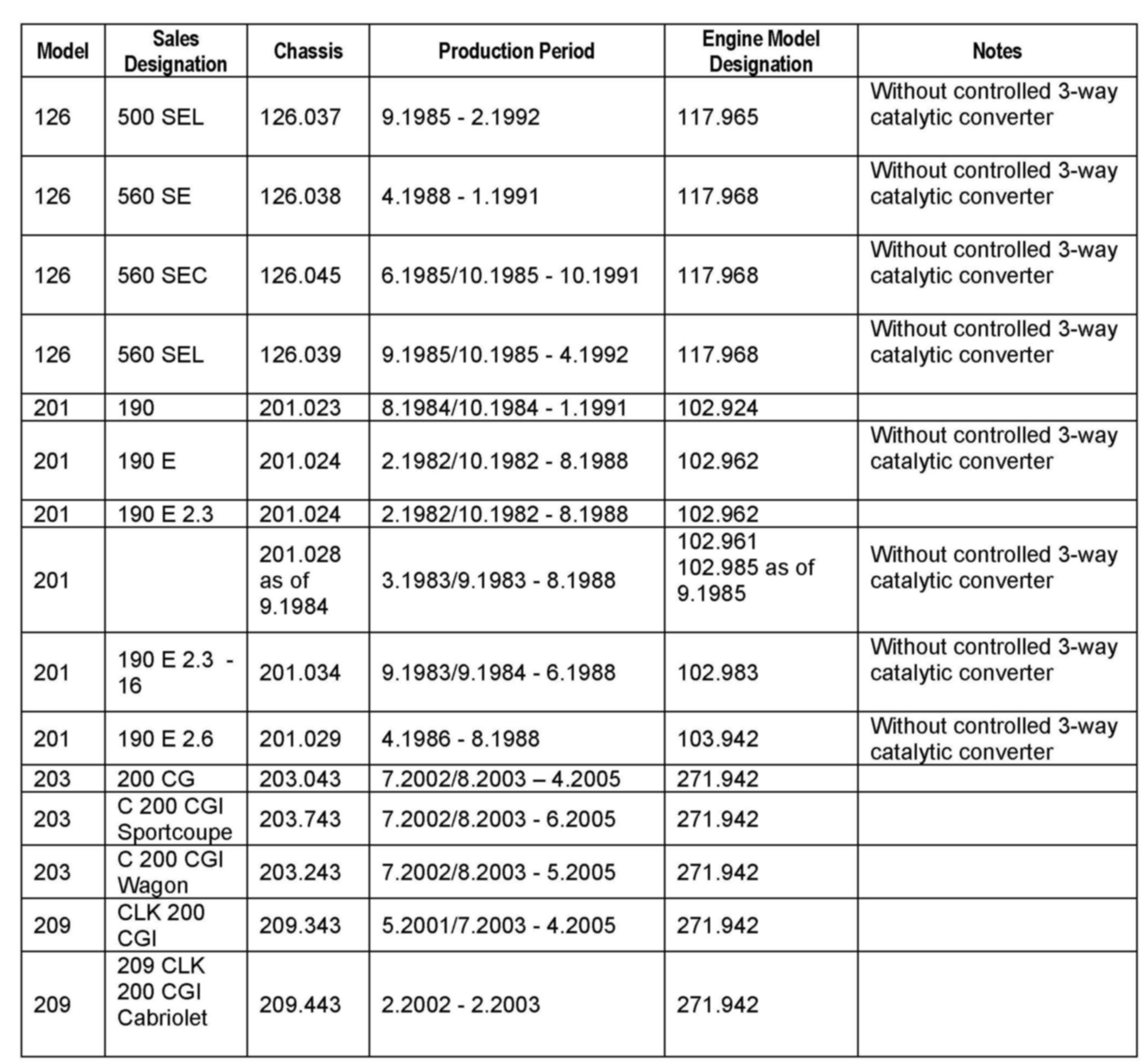 Exceptions are all models produced at the factory without a controlled 3-way catalytic converter or models equipped with a carburetor. These are generally older than 25 years.