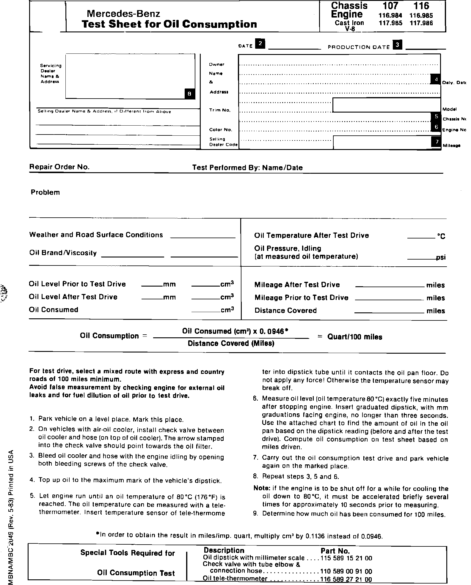 Test Sheet Chassis 107, 116