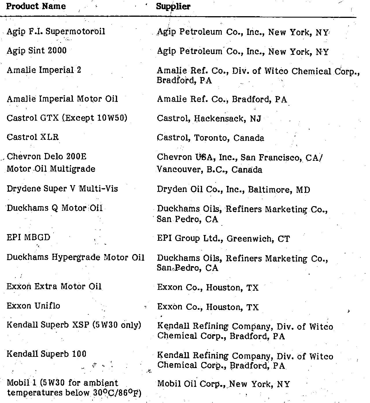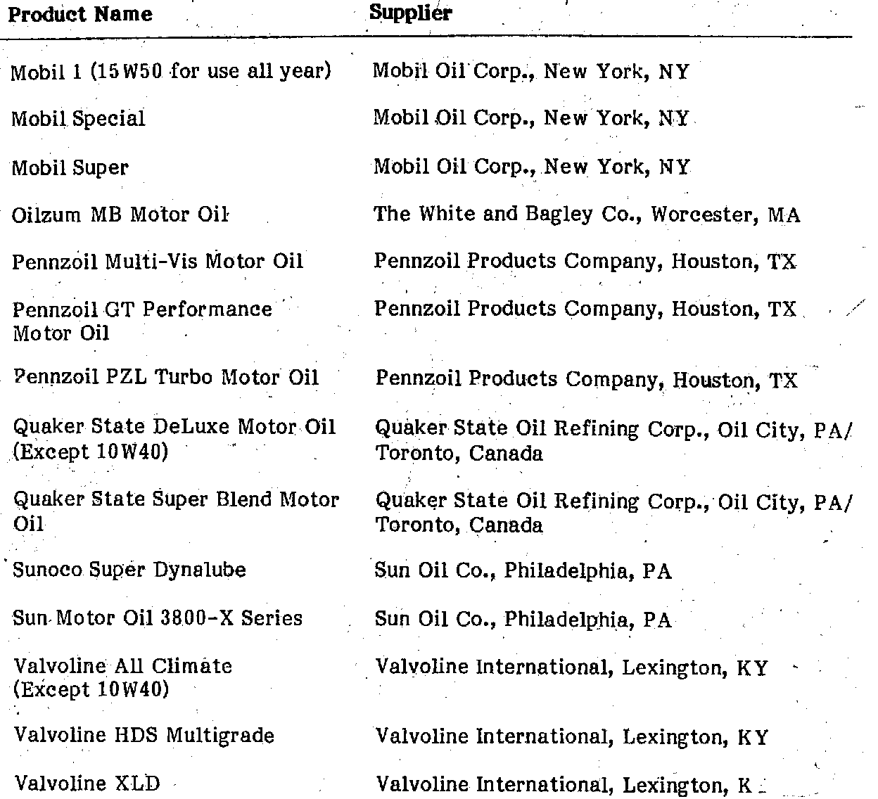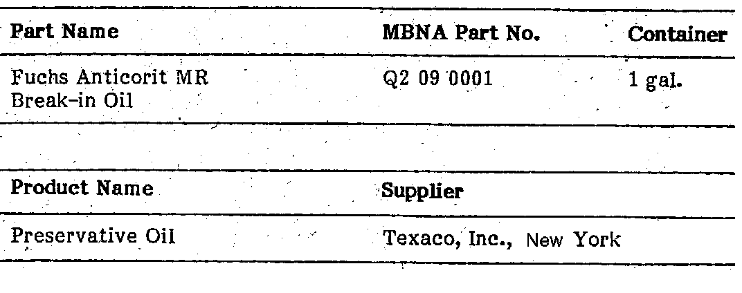 This is a current listing of factory-approved service products which are presently available in the U.S.A. it will be revised from time to time to add or delete products according to the latest information received from the factory. Any product listed in future supplements, to the "M-B Specifications for Service Products" microfiche that is available, in the U.S.A. is also automatically approved for use.