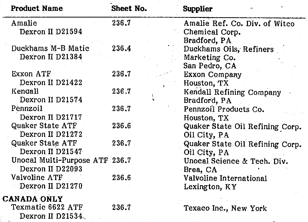 Automatic Transmission Fluid (Sheet No. 236.4, 236.6 & 236.7)
