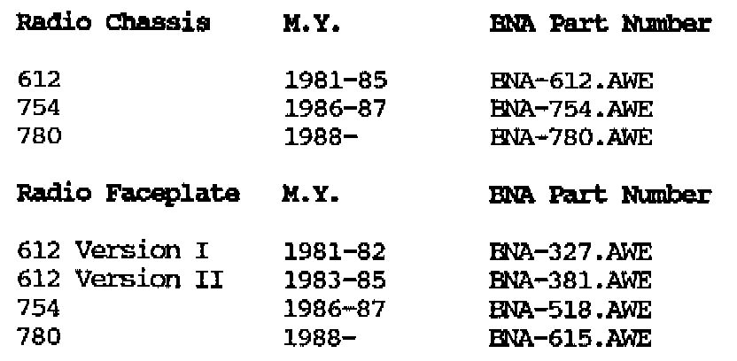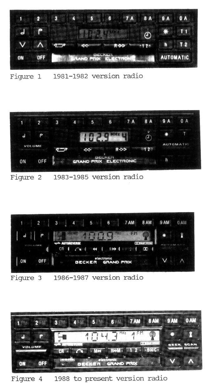 2.2 The Becker Grand Prix Electronic radios covered include 1981-1982, 1983-1985, 1986-1987 and 1988-to present version chassis and faceplates (Figures 1 though 4).