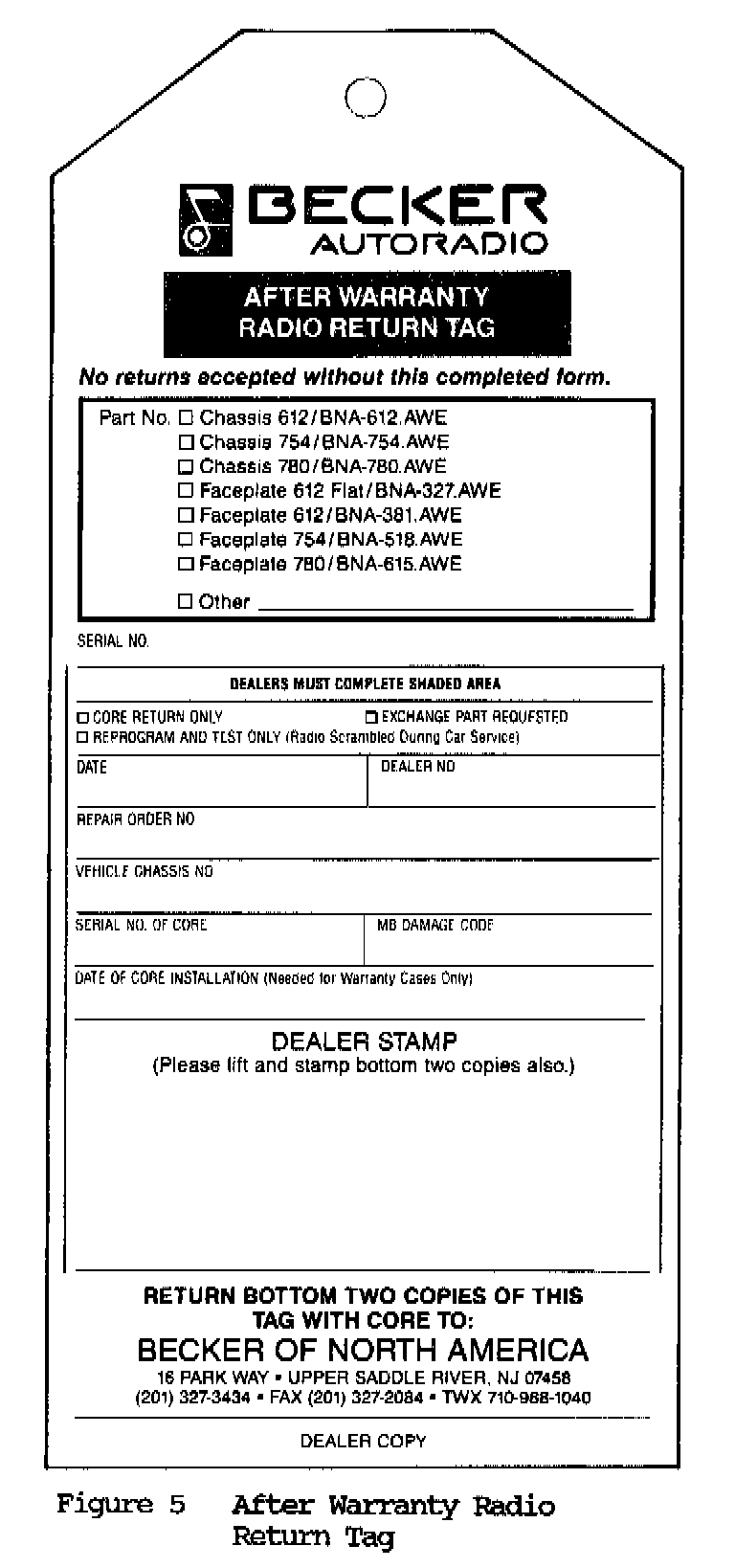 - M-B dealer must attach a completed Radio Return Tag to each core part returned to BNA.