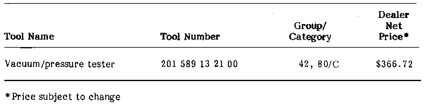A vacuum/pressure tester, tool no. 201 589 13 21 00, is now available as a special tool for checking both vacuum and pressure Systems such as the single-line central locking system or the orthopedic backrest. The size of the tester is identical to the previous vacuum tester (116 589 25 21 00). The new tester has a range of 0-1000 mbar in increments of 5 mbar.